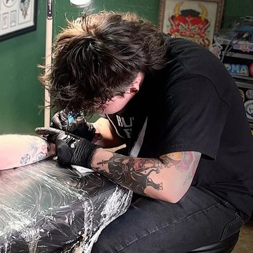 Shawn Morgan is a tattooer who welcomes any style but specializes in color American traditional and fine line black and grey.